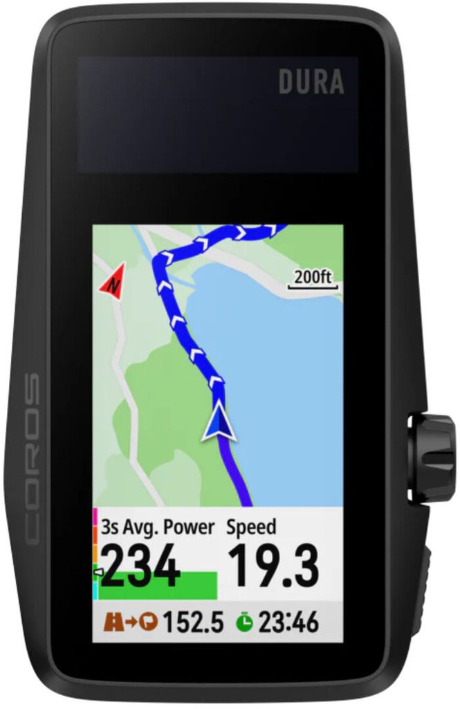 Cyklocomputer s DNA Coros. Coros Dura vyniká skvělou výdrží baterie podporovanou solárním napájením, které by mohlo přístroj "udržet naživu" navždy. Kromě toho má ale dvoupásmovou GPS, skvěle čitelný 2,7“ MIP displej, navigaci a mapy od Google Maps a korunku jako ovládací prvek.