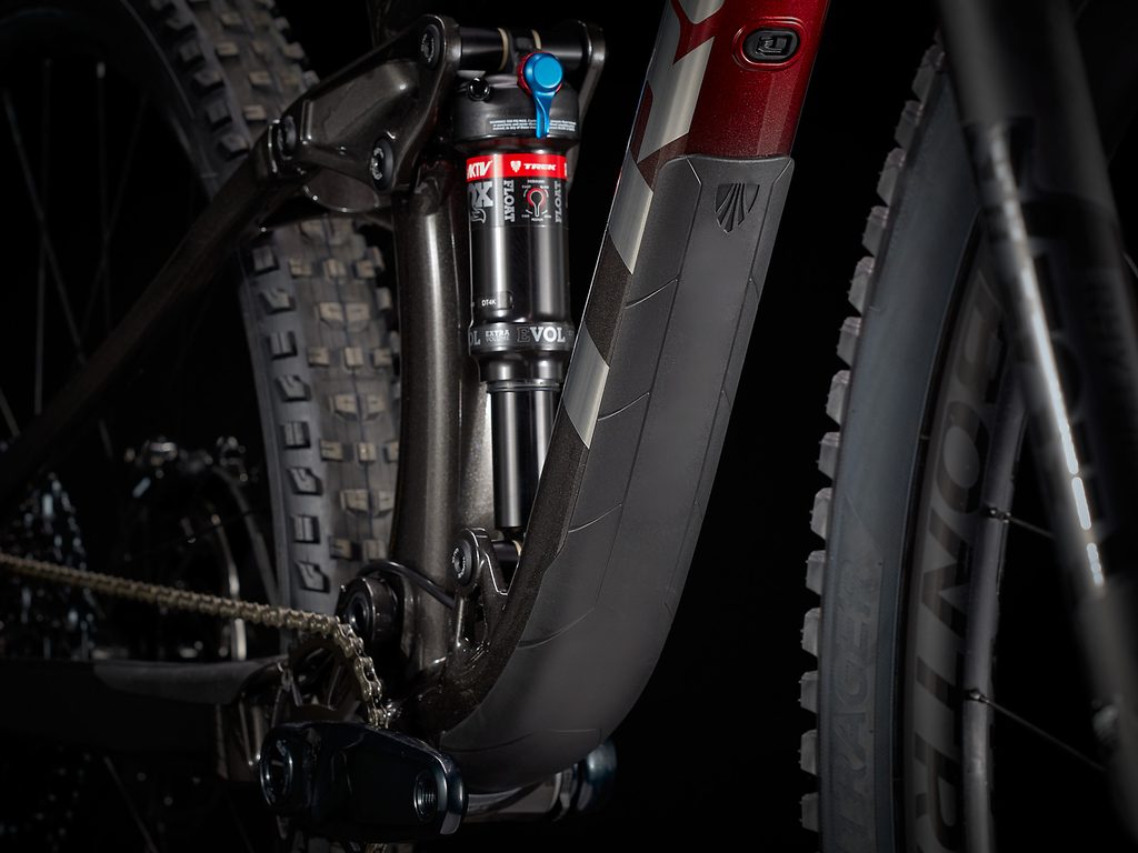 Lehký hliníkový rám, 140mm vidlici FOX Rhythm 34, 130mm zadní zdvih a mimořádně účinný tlumič RE:aktiv. Sadu komponent řazení SRAM GX Eagle 1x12 s extra lehkým převodem do stoupání (52 zubů) a teleskopickou sedlovku Bontrager Line.